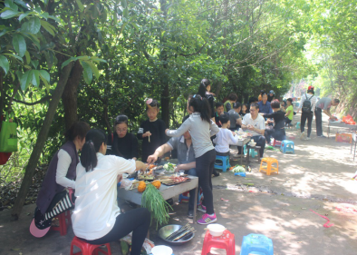 中午11時(shí)左右,下山的客戶朋友稍作休息后就迫不及待來(lái)到燒烤場(chǎng),準(zhǔn)備享受美味的食物。