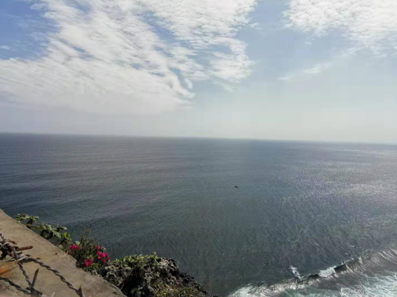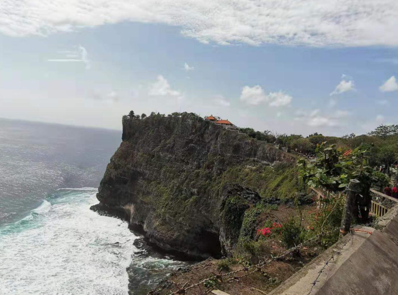 午餐后,去了烏魯瓦圖斷崖(情人崖)。這里海浪拍打著懸崖,海鳥在空中翱翔,景色非常迷人。與海神廟岸邊公園相似,情人崖上也遍布各種帶有宗教色彩和巴厘島特色的石雕,這些雕塑造型圓潤(rùn),線條卻無(wú)比繁復(fù),足可見出工匠的巧手妙思。更有熱帶風(fēng)情的是,不少神像的耳邊還插著一朵當(dāng)?shù)刈疃嘁姷哪厅S色雞蛋花,巴厘人的細(xì)膩多情可見一斑。在情人崖有許多猴子,特別猖獗,會(huì)搶東西,除非用吃的或錢引誘,要不沒法取回。