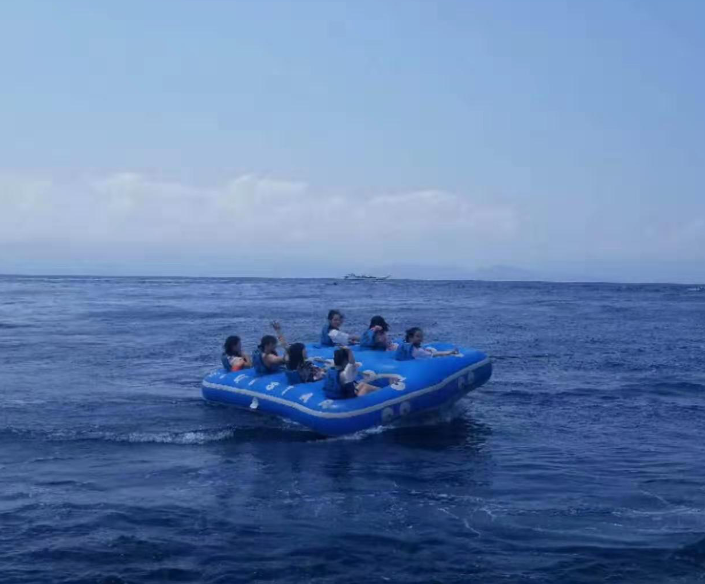 下午,我們來(lái)到太陽(yáng)島,在這可以盡情的玩耍水上活動(dòng)。包括無(wú)限次數(shù)乘坐香蕉船、浮潛、甜甜圈。