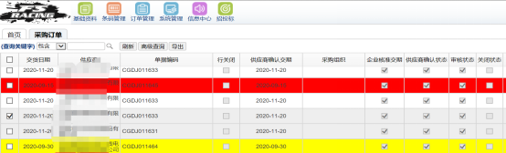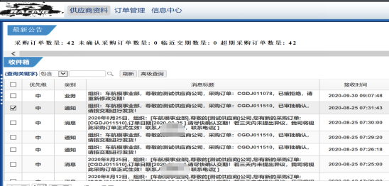供應商交貨情況、訂單消息界面展示